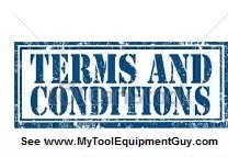 A copy of the terms and conditions of The Tool Connection and Primrose USA, Inc. also doing business as MyToolEquipmentGuy.com , MyToolGuy.com and The Tool Connection has been made available to customer via the internet. By ordering from our web site, or by phone or catalog, and making payment for product, buyer is confirming that they have read, and agree to these terms and conditions.